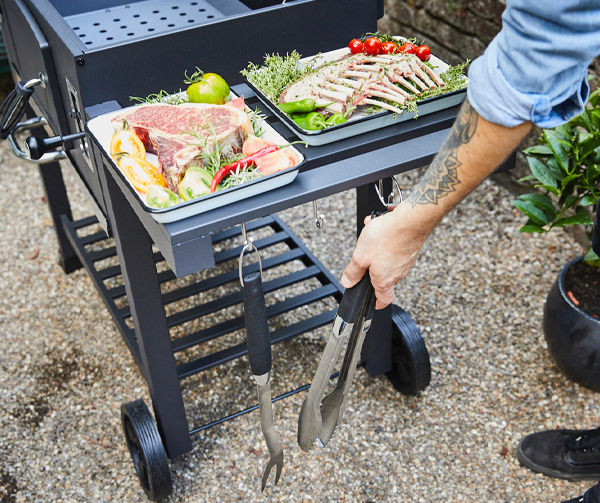 Die Alleskönner unter den Kohlegrills. Ob du lieber grillen, smoken, backen, garen oder räuchern möchtest – alles geht mit JAXON. Diesen Grillwagen im „American style“ gibt es in zwei Größen – 58 x 42,5 cm und 72,5 x 47,5 cm Grillfläche. Optimale Voraussetzungen für dein Barbecue: Das gusseiserne Grillrost. Die Temperatur hast du mit Zu- und Abluftsteuerung, höhenverstellbarer Kohlenschublade und Deckelthermometer jederzeit im Griff. Eine große Kohle-Luke an der Front erleichtert dir das Nachlegen von Grillkohle. Und dank Ascheschublade ist er mühelos zu reinigen. Ideal für probierfreudige Hobby-Griller.